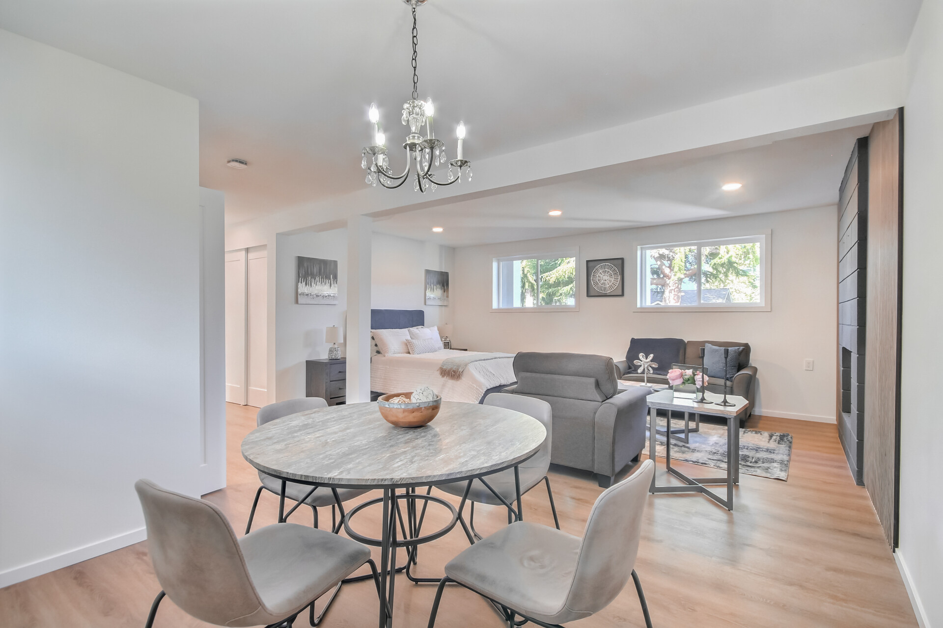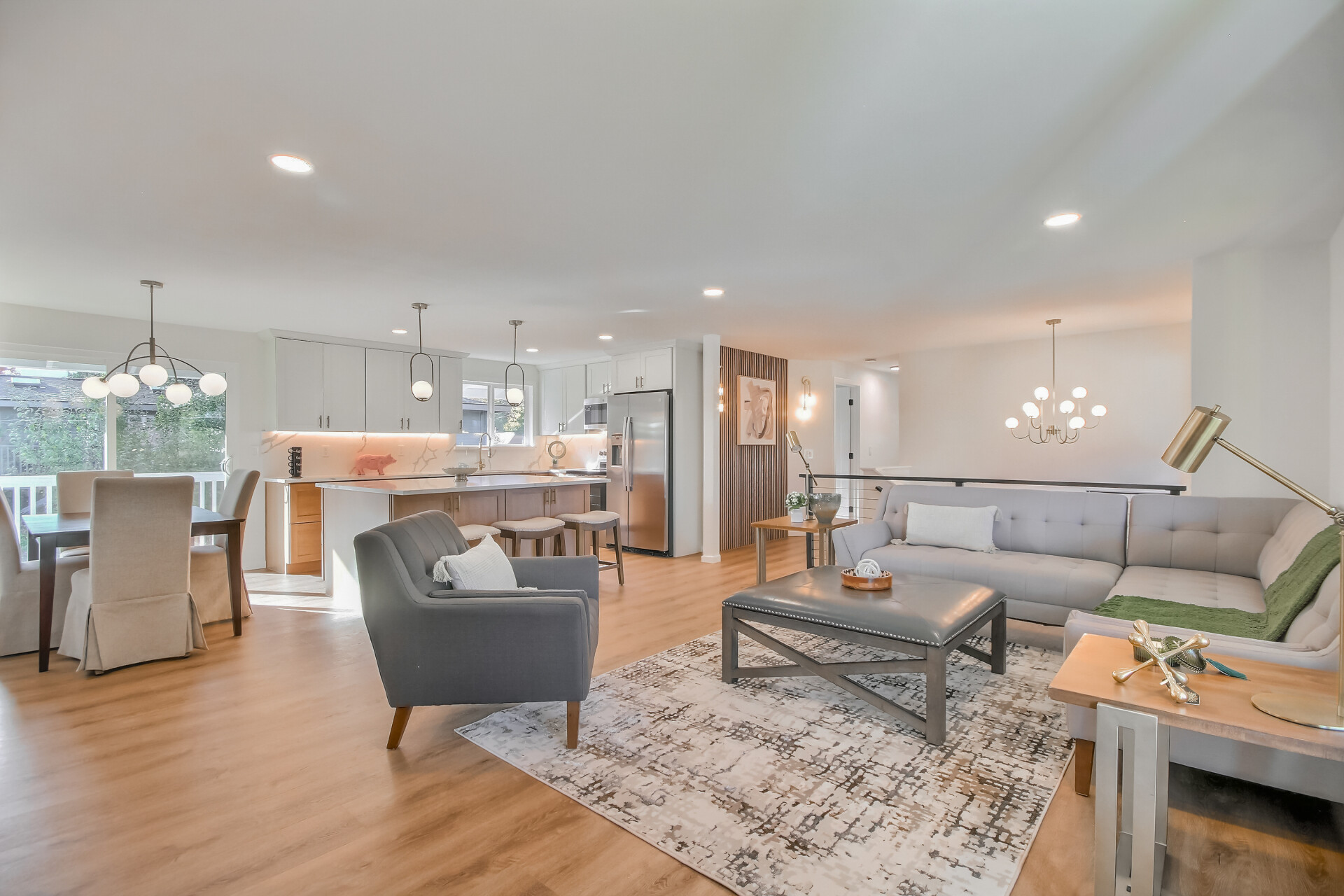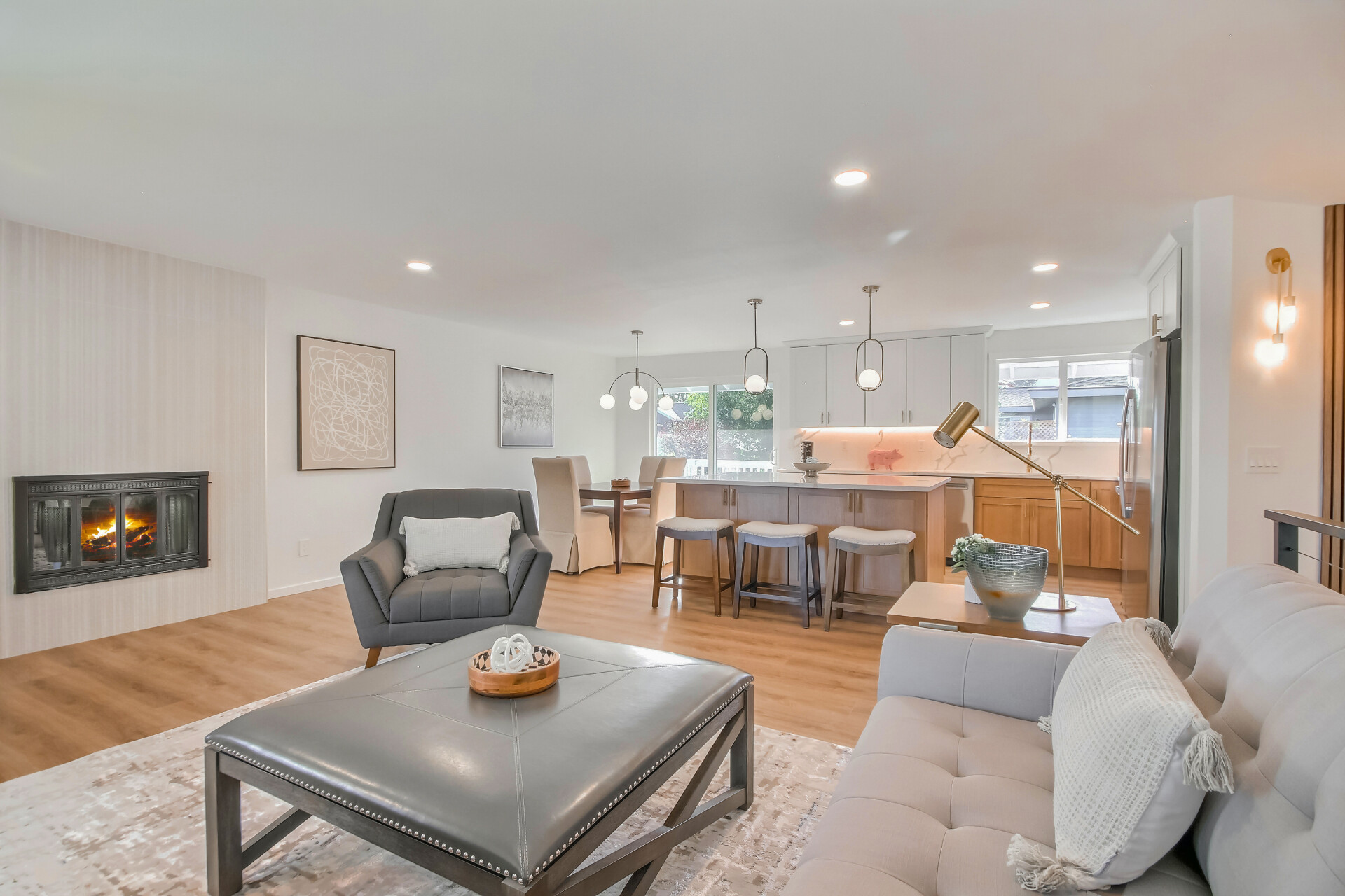 Modern Elegance Meets Timeless Comfort Experience refined living in this fully renovated 5-bedroom, 3-bath, two-story home designed for today’s lifestyle. The open-concept floor plan showcases a chef’s kitchen with a striking island, fluted stone fireplace, and all-new stainless-steel appliances—perfect for both everyday living and entertaining.