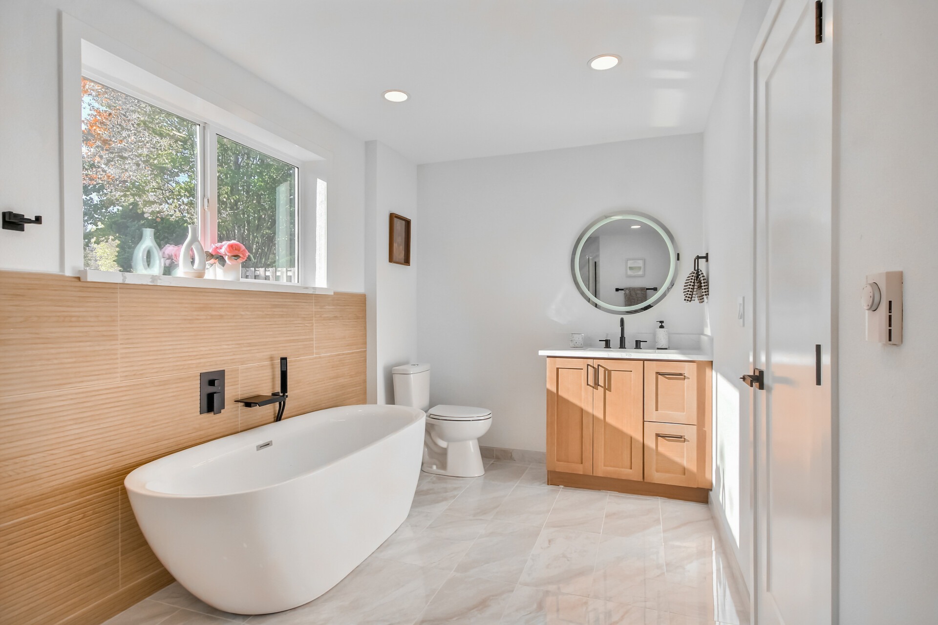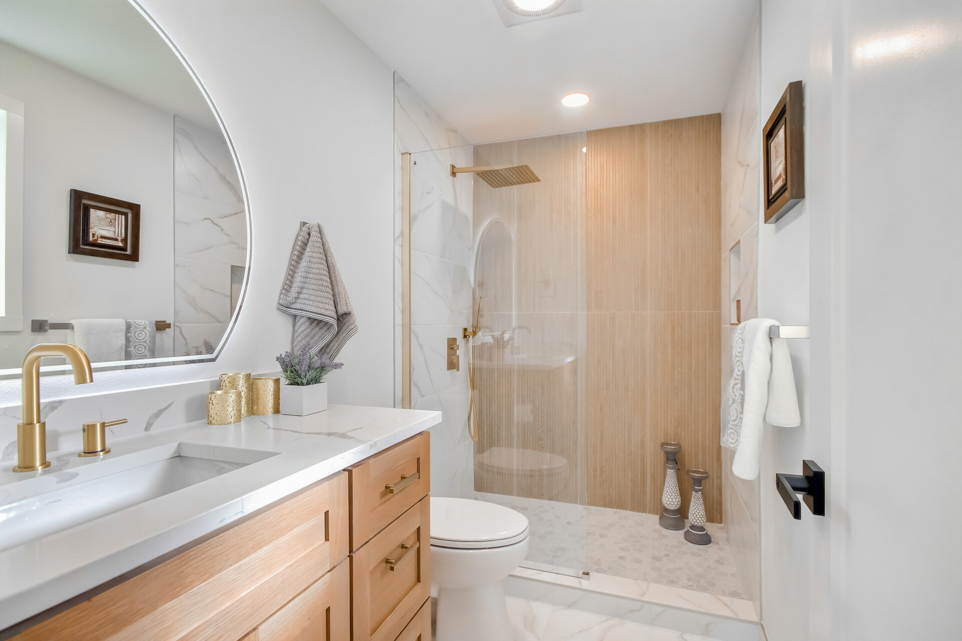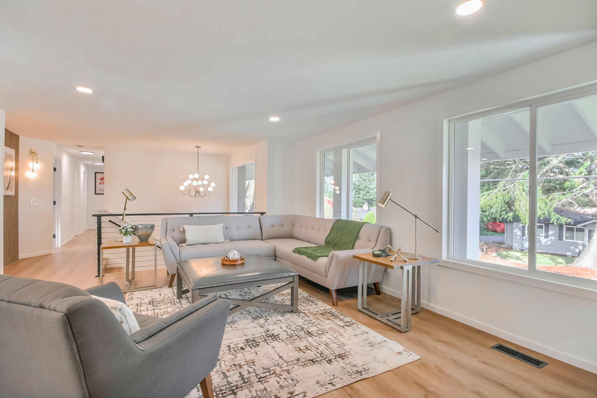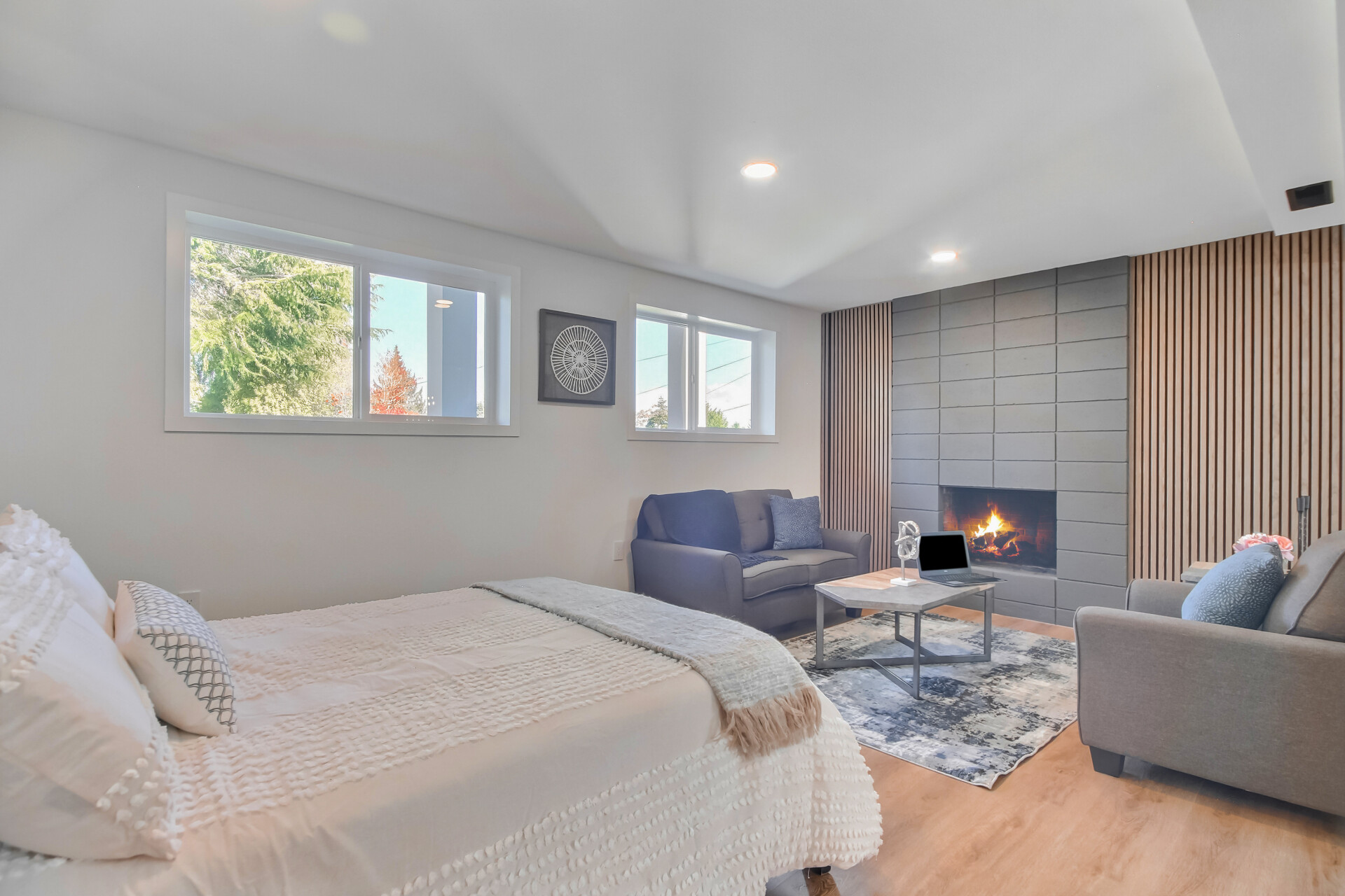 Step in to this fully renovated 5 bedroom, 3 bath, two story home designed for today's lifestyle. Enter the double door to the wide stairs up to the main living area with an open layout, fluted stone fireplace, all-new stainless-steel appliances, striking kitchen island, Quartz counter tops, white oak/ white kitchen cabinets w/ gold hardware and matching light fixtures. Main level has also 4 bedrooms and 2 bathrooms. The primary bedroom incl. an en-suite bathroom with walk-in shower, while the guest suite offers a private living area, fire place, 5 piece bath with freestanding tub, and walk-in closet. A two car garage completes this Move-in ready, beautifully finished, and crafted with modern sophistication house.